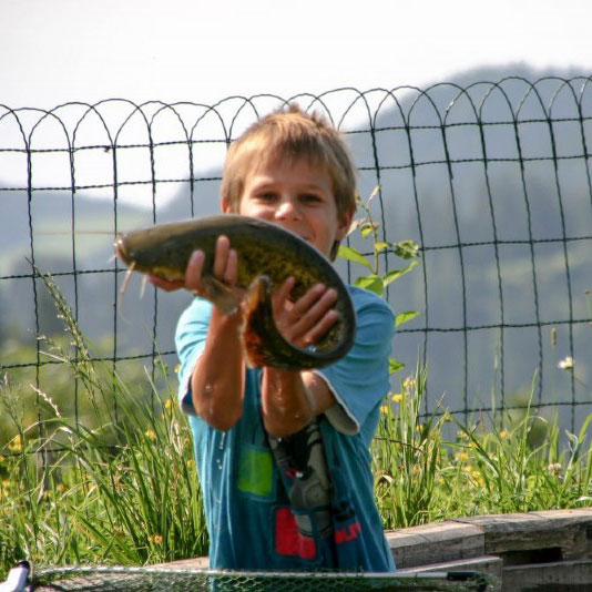 Beide Jungs haben ihre verschiedensten Fische in einem eigenen Teich oder im Aquarium. Die vielen bunten Fische zu beobachten, ist eine beruhigende Sache für sich - ein farbenfrohes Bild ohne Ton!